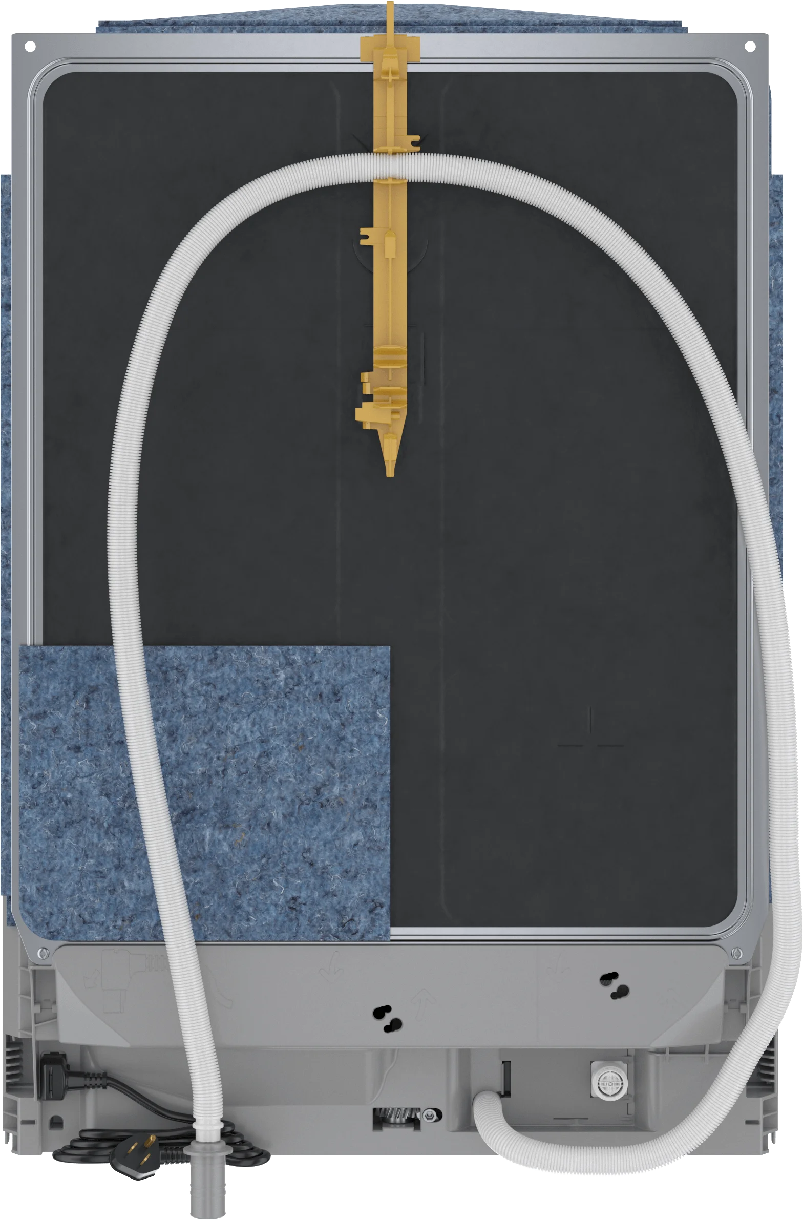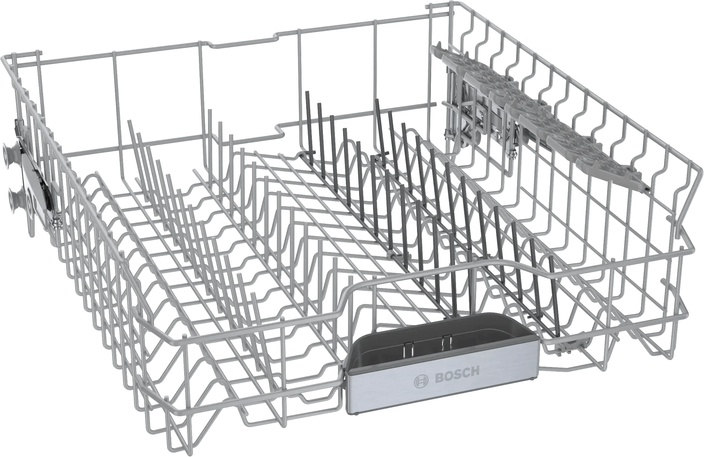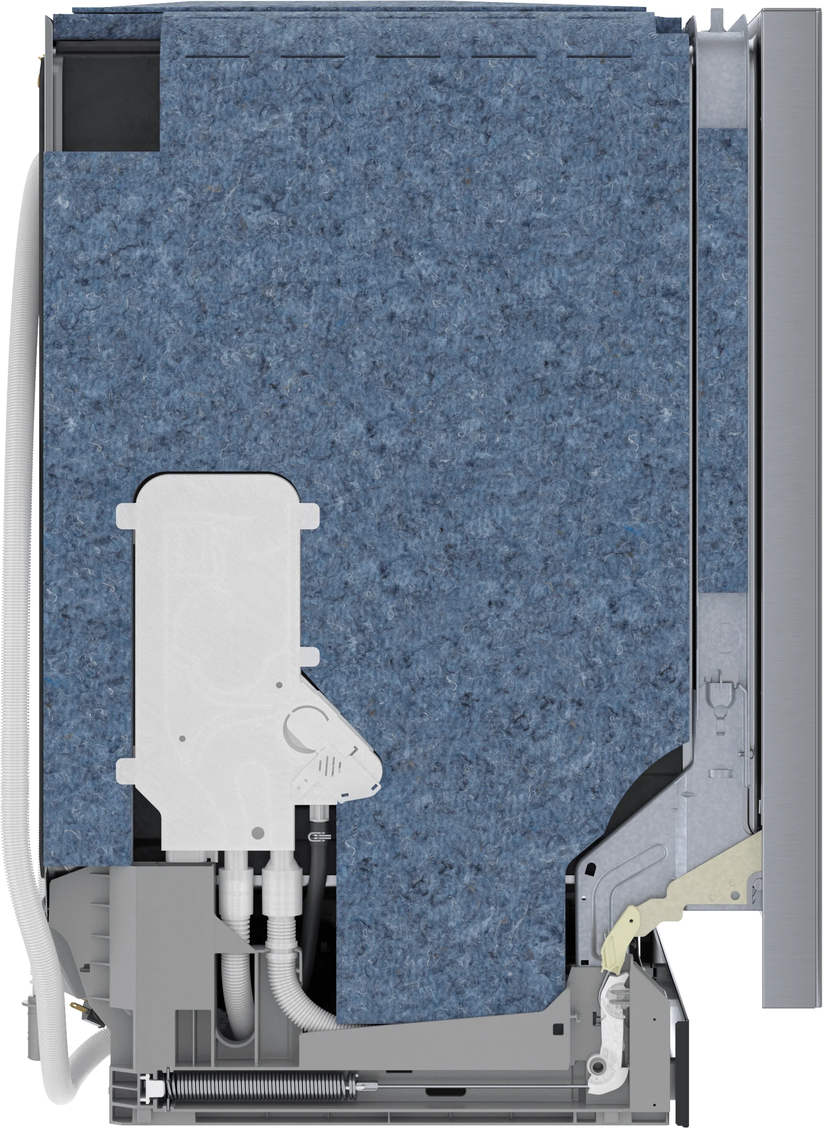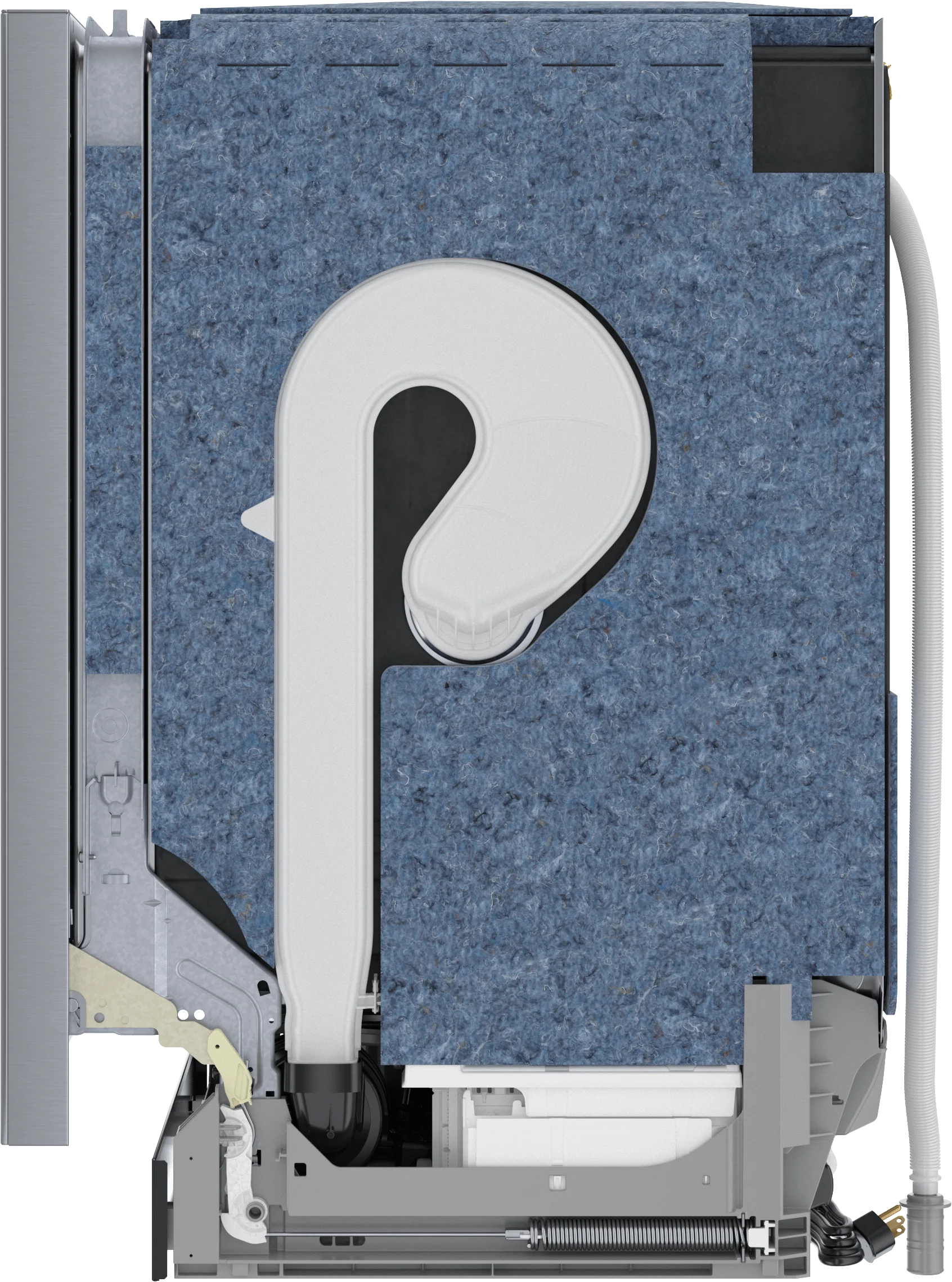 Extremely quiet operation at 42 dBA - Creating a dishwasher so quiet, you can't always tell it's running. InfoLight shines LED lighting inside the handle to indicate when it is running., Enhance your cleaning experience with Wi-Fi enabled Home Connect - Enhance your cleaning experience with personalized app features like Smart Cycle, hands-free voice control with Amazon Alexa or Google Home and so much more, all when you use Wi-Fi enabled Home Connect., Sanitization for your dishes - Sanitize Option eliminates up to 99.9% of bacteria and meets NSF requirements for sanitization., The Flexible 3rd Rack provides a versatile space for utensils - The Flexible 3rd Rack has expandable wings that easily lower to accommodate more of your deeper items. Meanwhile adjustable tines let you customize the rack s loading space to fit awkward or bulky utensils., Fit in tall items with RackMatic - RackMatic easily adjusts to three different heights and up to nine separate rack positions, allowing taller items like stemware to fit in the middle rack while leaving room for pots and pans below., Redesigned EasyGlide rack system - The EasyGlide rack system is redesigned to give you a smooth glide on all three racks-even when it s fully loaded., Create room for bulky items with FlexSpace Tines - The FlexSpace Tines let you fold down every other tine in one simple step, so it s easier to fit your largest, bulkiest items. It helps to hold pots and pans upright, leaving more room for your other dishes., Hidden top touch controls maintain a clean exterior - The touch control panel has been simplified to offer the cycles and options you use most--all at the touch of your fingertips. Additional cycles and options are available through the Home Connect app., Favorite button lets you access your favorite cycle & option combination with one touch - The Favorite button on the control panel lets you select and save your favorite cycle/option combo that you preset in the Home Connect app., Choose the perfect wash cycle and options for all of your loads - Offers 5 standard wash cycles, including the following Heavy, Auto, Normal, Speed60, Smart Cycle, and 3 standard options, including Sanitize, Remote Start, and Extra Dry.