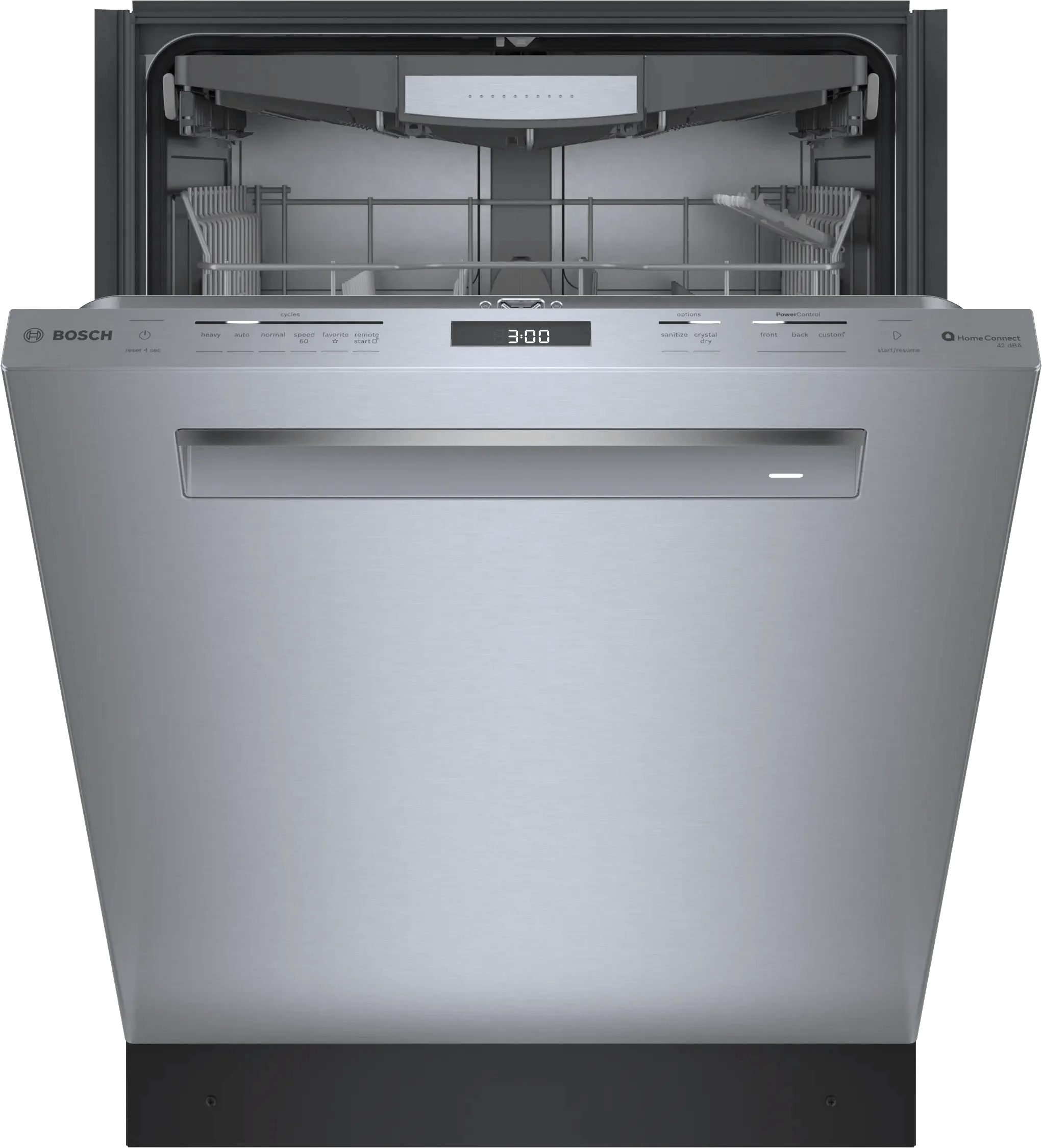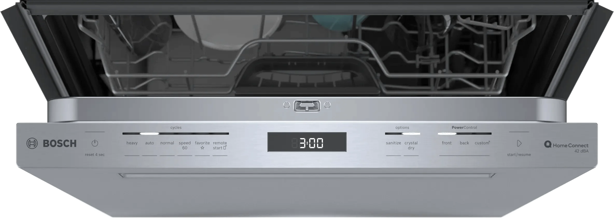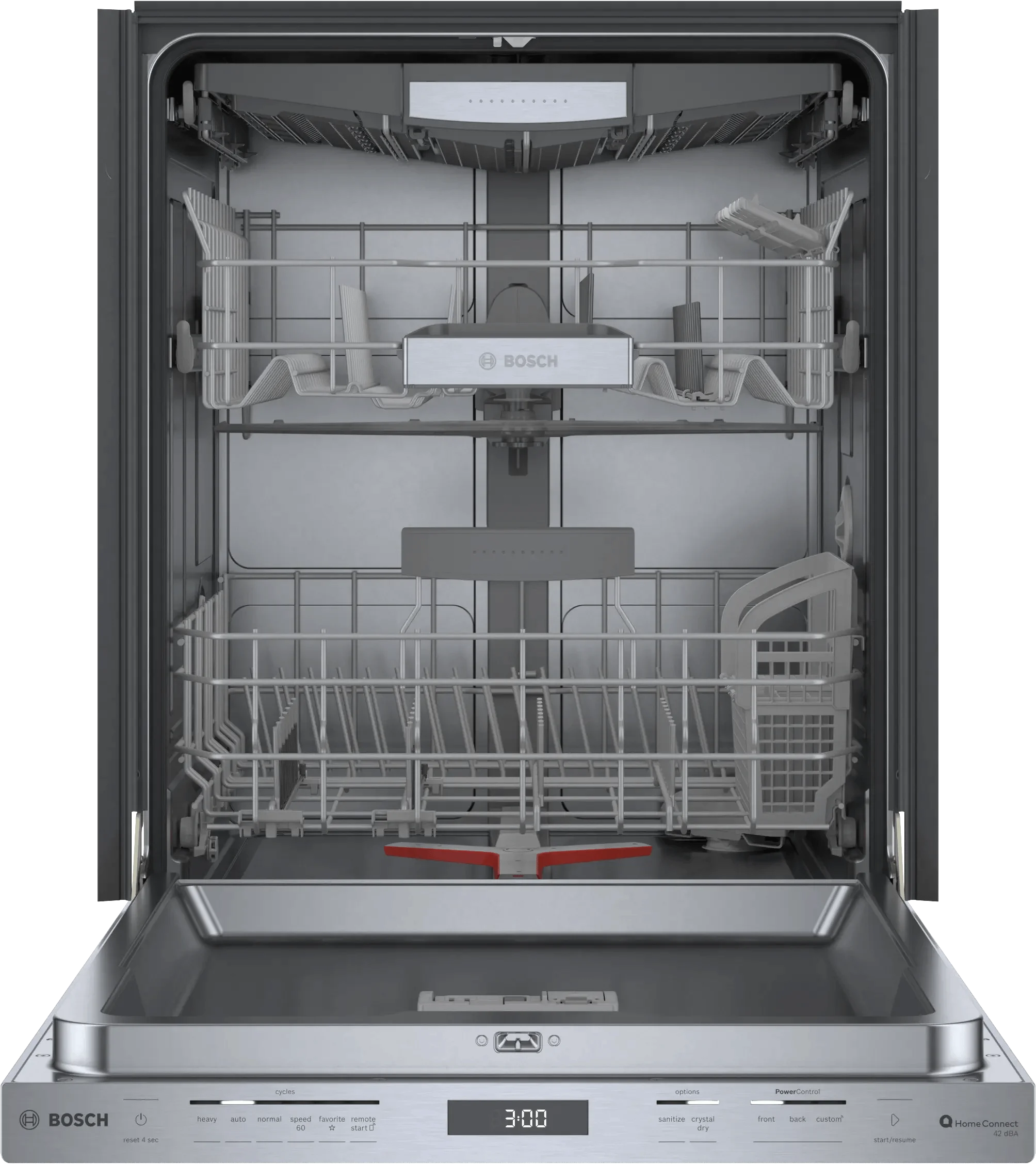moreBosch 800 Series dishwashers now combines advanced cleaning with the ultimate dry. The innovative and versatile PowerControl spray arm takes our PrecisionWash technology to the next level, letting you target your dirtiest dishes for a deeper clean or most delicate dishes with a lighter wash. No matter where you load them, trust every item will receive a deep, powerful clean, with no pre-rinse, pre-soak or handwashing needed. Patented CrystalDry technology then heats your dishwasher up to 176 degrees F, to give dishes, including plastics, the ultimate dry. The Flexible 3rd Rack provides a versatile space for utensils. Get personalized app features like Smart Cycle, hands-free voice control with Amazon Alexa or Google Home and so much more, all when you use Wi-Fi enabled Home Connect.