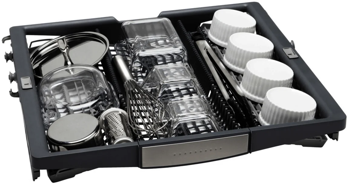 The Flexible 3rd Rack provides a versatile space for utensils, Newly redesigned EasyGlide™ rack system for a smooth glide on all three racks, Fit in tall items with RackMatic®