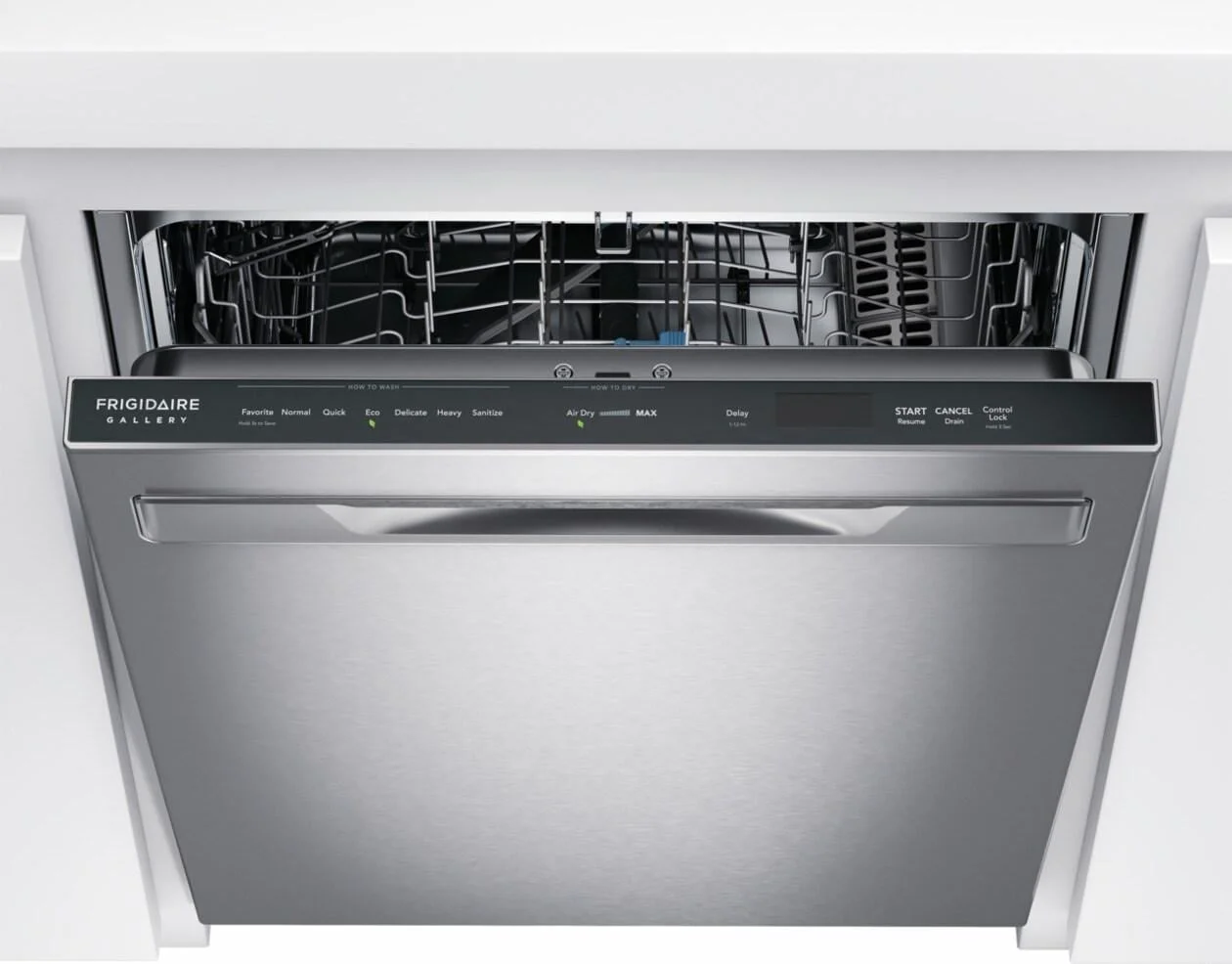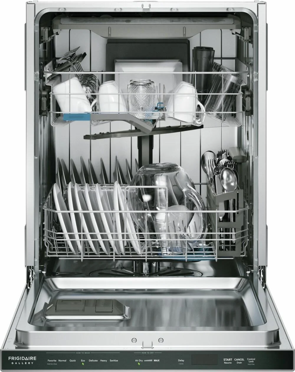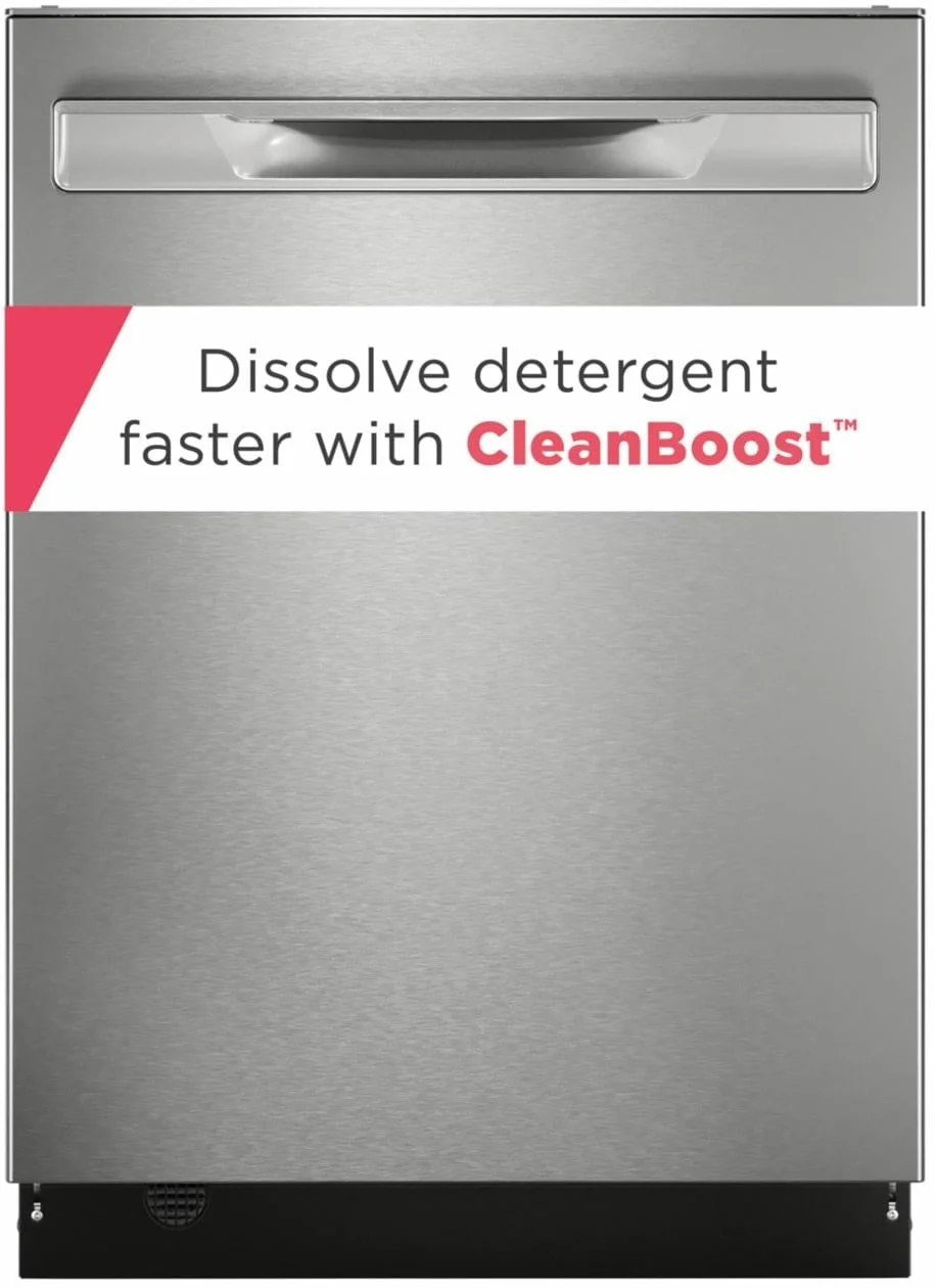 moreFrigidaire Gallery 24" Stainless Steel Tub Built-In Dishwasher with CleanBoost™ Technology maximizes the power of your detergent by premixing water and detergent before it hits your dishes, helping remove hard-to-clean and baked-on foods. Offers enhanced drying results with MaxBoost™ Dry. This quiet dishwasher (47 dBA) also offers a sanitize option, an adjustable rack, LED floor indicator light, 30-minute quick wash, and is Energy Star® certified.