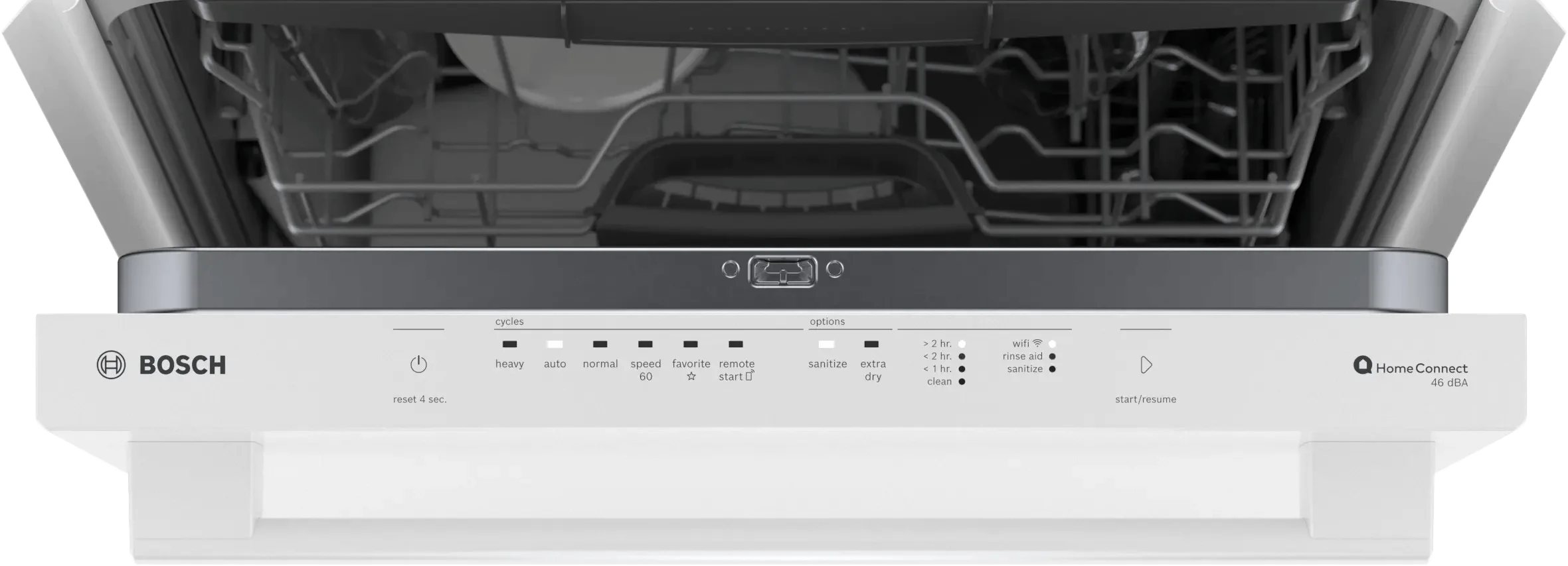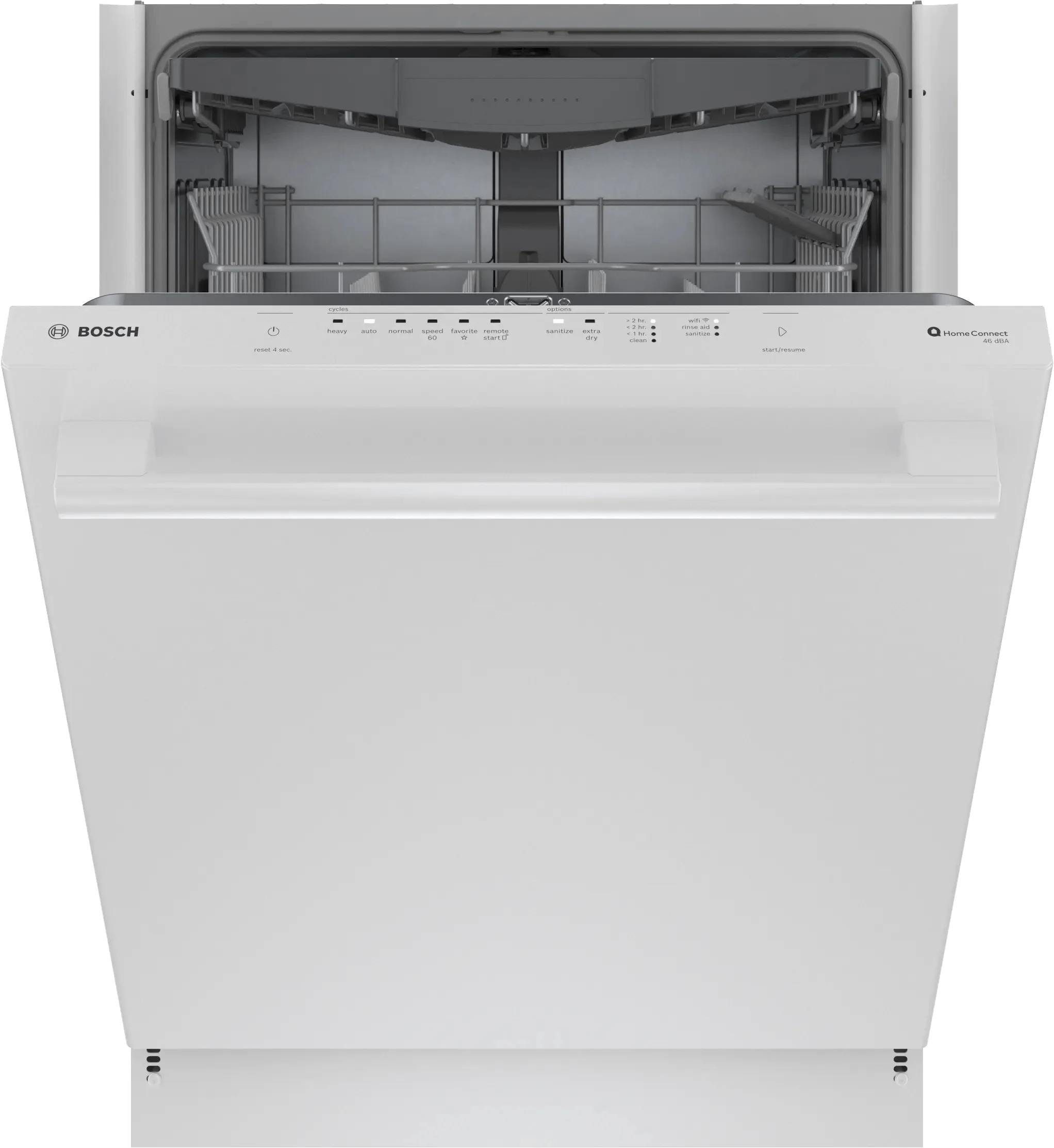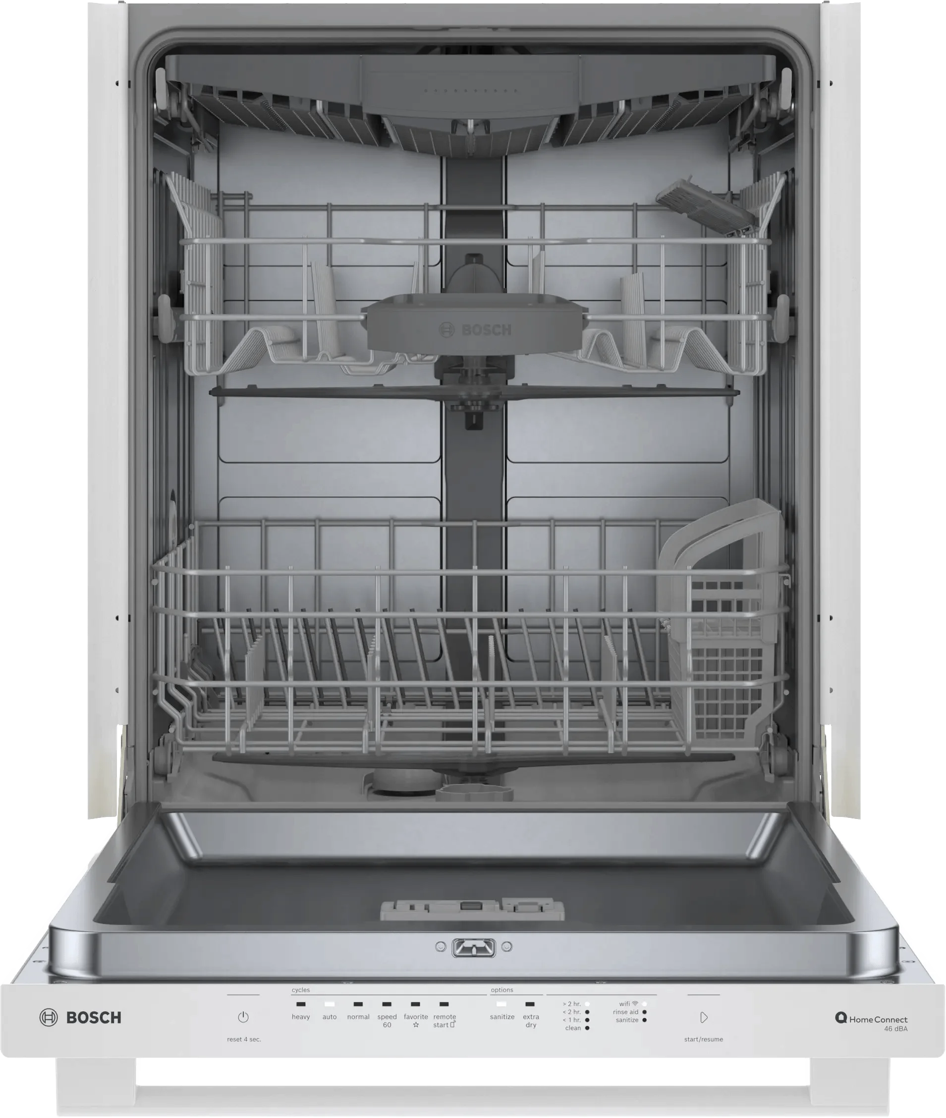 Home Connect®: - access additional wash cycles to choose the right one for your needs with Smart Cycle., RackMatic®: - adjusts the upper rack to 9 different positions, allowing for taller items like stemware or leaving room for pots and pans below., 10 years warranty: - our promise against rust-through., Remarkably Quiet Operation at 46 dBA: - creating a dishwasher so quiet, you can't always tell it is running -- this is what makes Bosch the quietest dishwasher brand in the U.S.*, PureDry®: - Our energy efficient drying system allows you to safely place plastics anywhere, even on the bottom rack, without fear of melting., RackMatic®: - adjusts the upper rack to 9 different positions, allowing for taller items like stemware or leaving room for pots and pans below., 10 years warranty: - our promise against rust-through., Remarkably Quiet Operation at 46 dBA: - creating a dishwasher so quiet, you can't always tell it is running -- this is what makes Bosch the quietest dishwasher brand in the U.S.*, PureDry®: - Our energy efficient drying system allows you to safely place plastics anywhere, even on the bottom rack, without fear of melting.