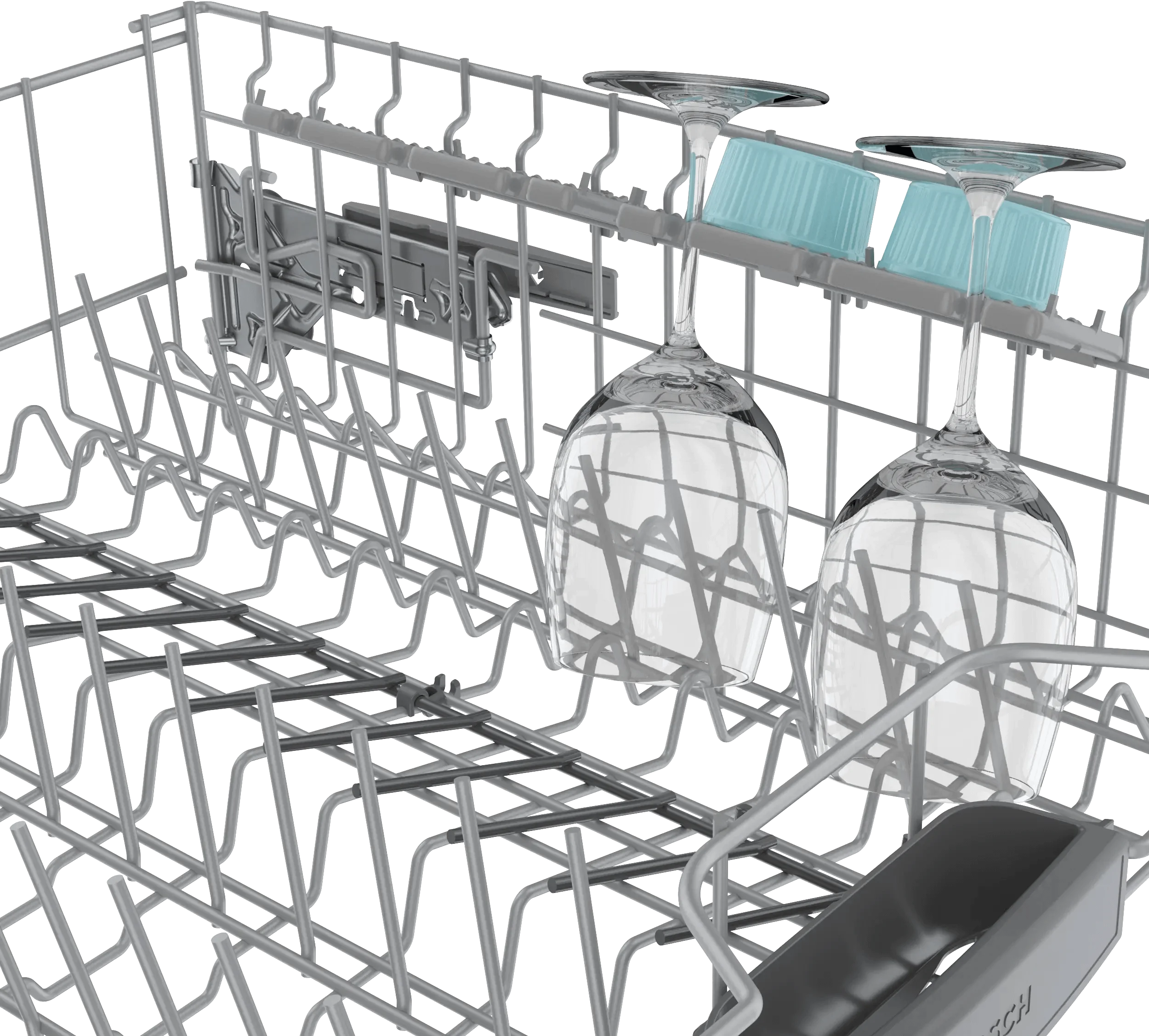 - RackMatic®: - adjusts the upper rack to 9 different positions, allowing for taller items like stemware or leaving room for pots and pans below.
