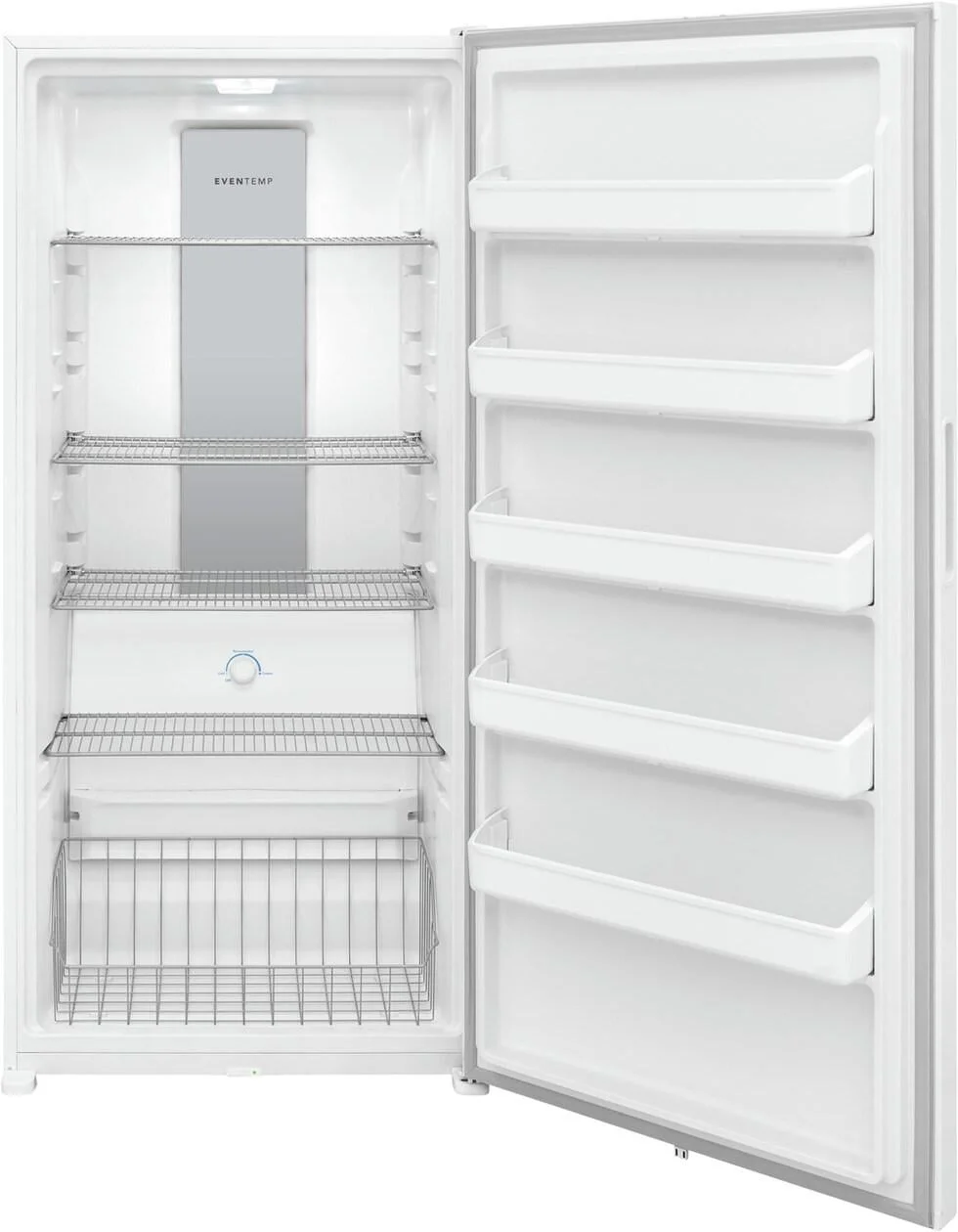 moreThis Frigidaire 20 cubic foot upright freezer includes a superior tight seal that locks in cold air, keeping food frozen for two days if there is a power outage, and the EvenTemp™ Cooling System, with a variable speed compressor that constantly circulates cold air throughout the freezer with smart sensing technology that adjusts air flow to maintain a uniform temperature.