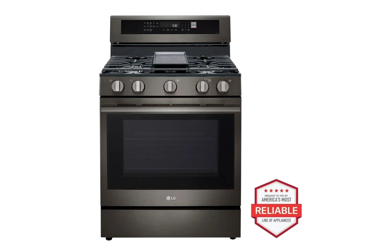 Enjoy a 2-year limited warranty on select appliances purchased through December 31, 2025 via the ThinQ® app. Terms apply., 6.3 cu. ft. Large Capacity, Enjoy multifunctional versatility with ProBake Convection®, Air Fry and Air Sous Vide, UltraHeat™ 20K BTU burner for rapid boiling and true simmering, Knock twice on the InstaView® window to see inside, Speed clean your oven with our 10-Minute EasyClean® cycle or use self-clean for a deep clean, Restyled bar handles deliver premium style, Get the ThinQ® app to access smart features and ThinQ Care™ alerts