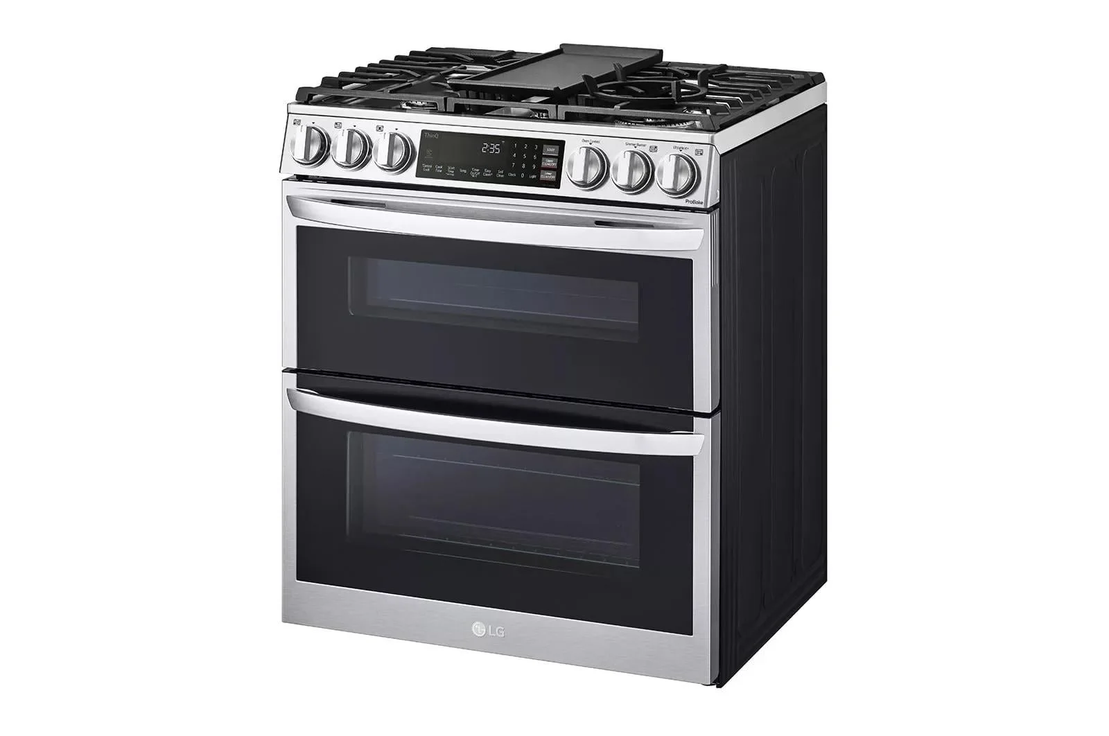The Gas Ranges 6.9 Cu. Ft. Smart Gas Double Oven Slide-In Range With Instaview®, Probake® Convection, Air Fry, And Air Sous Vide, made by LG Appliances,