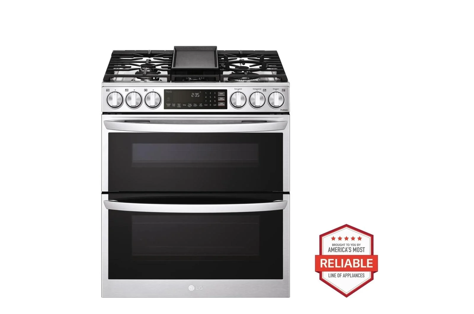 LG Appliances 6.9 Cu. Ft. Smart Gas Double Oven Slide-In Range With Instaview®, Probake® Convection, Air Fry, And Air Sous Vide