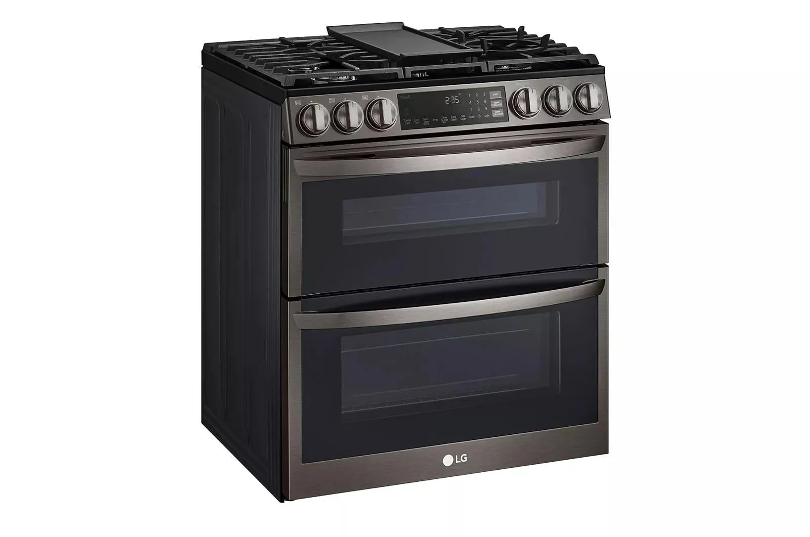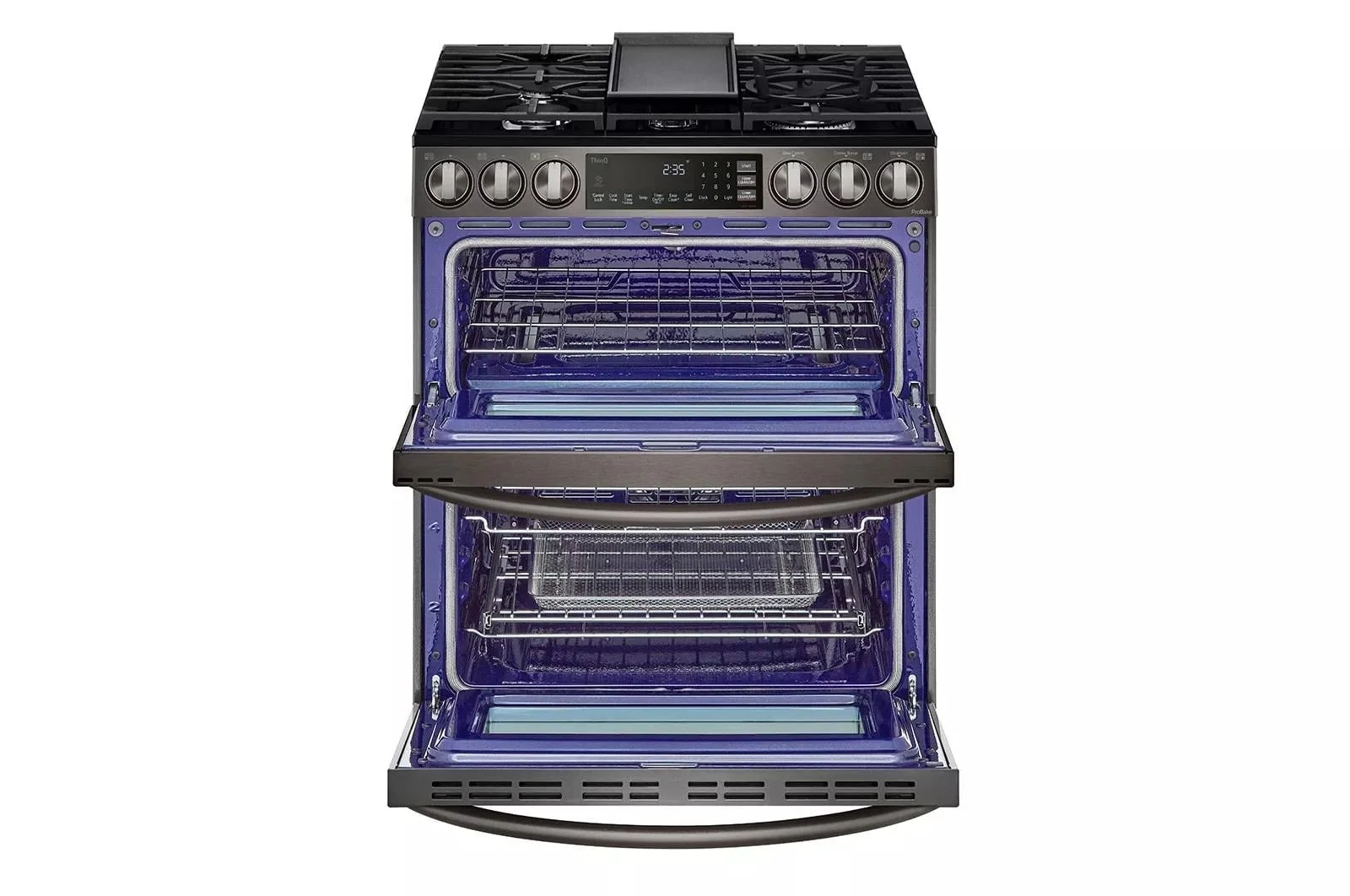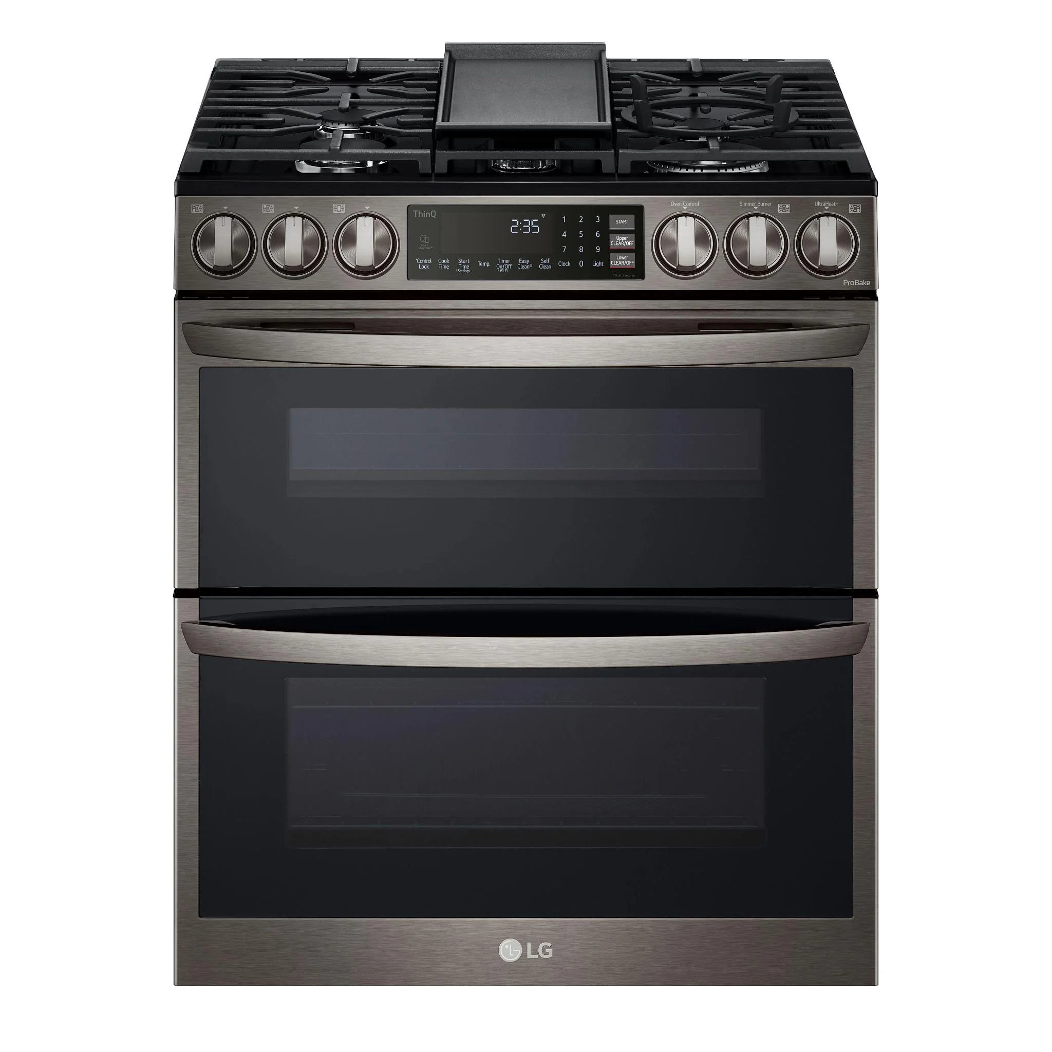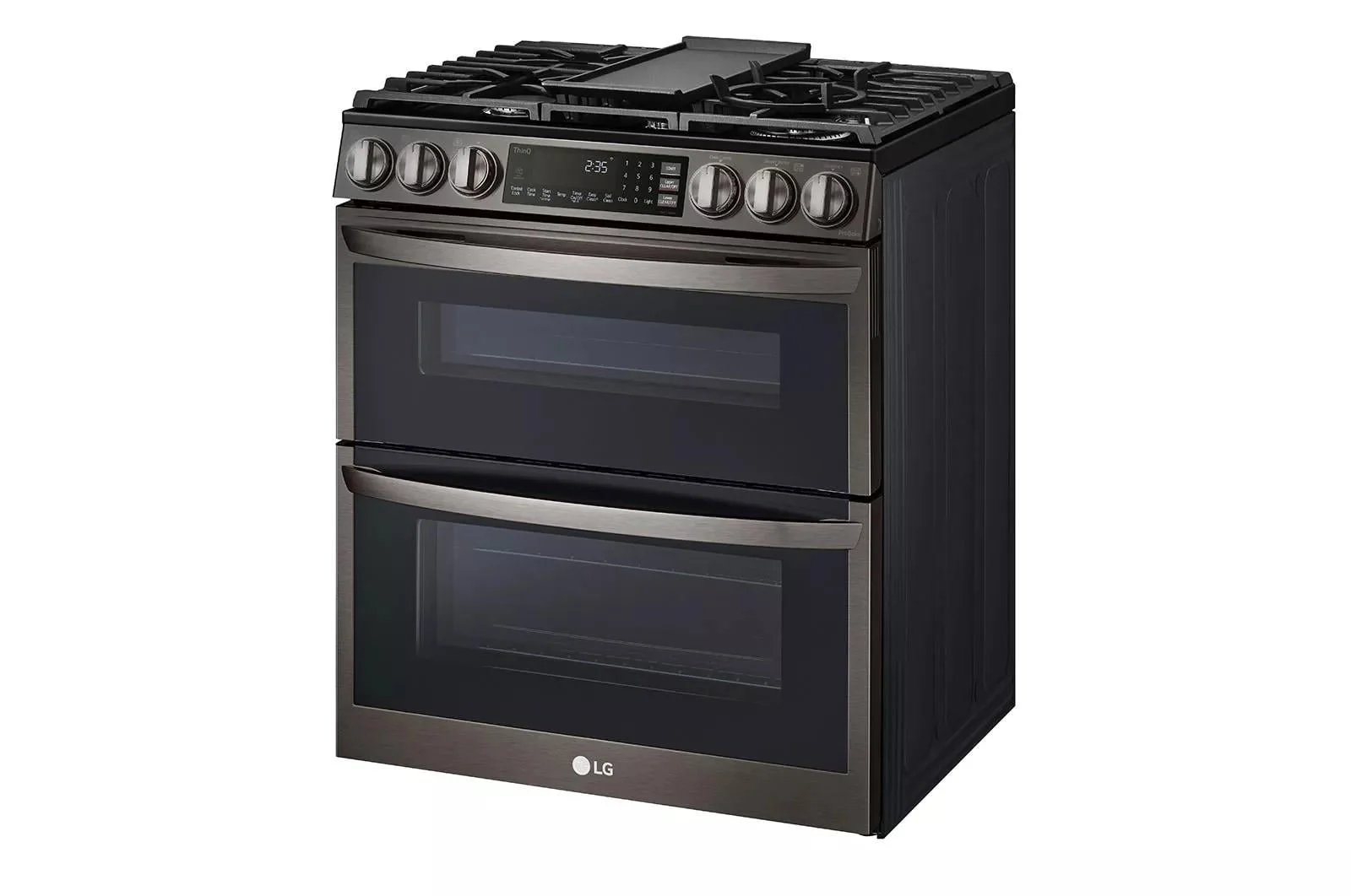 The Gas Ranges 6.9 Cu. Ft. Smart Gas Double Oven Slide-In Range With Instaview®, Probake® Convection, Air Fry, And Air Sous Vide, made by LG Appliances,
