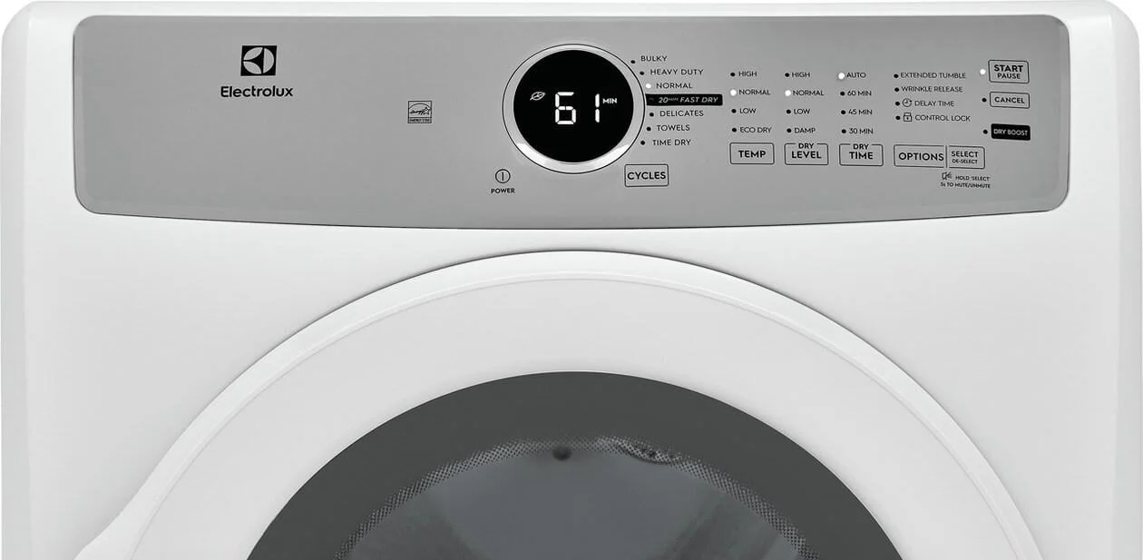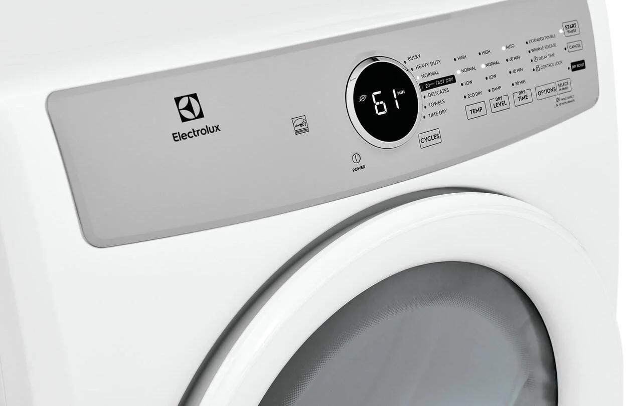moreThe Electrolux front load electric dryer features the 20-Minute Fast Dry cycle which allows you to quickly dry the items you need the most.