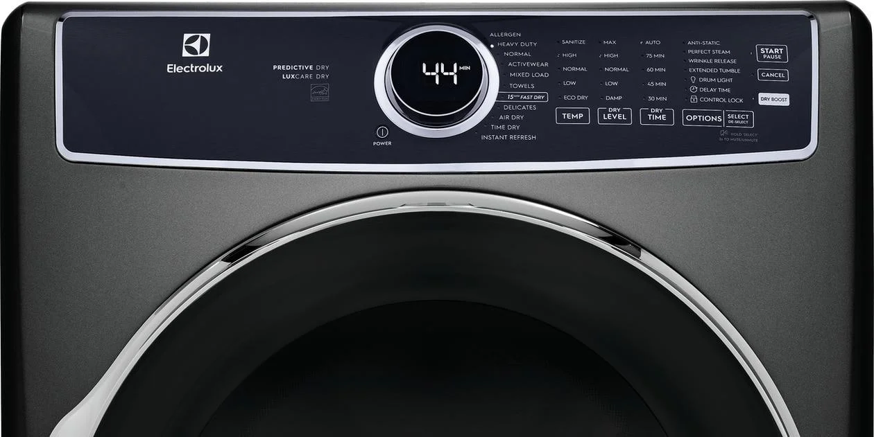 moreThe Electrolux front load gas dryer with LuxCare® Dry uses an advanced moisture sensor to prevent over or under-drying. The Instant Refresh cycle allows you to remove wrinkles and refresh clothing in just 10 minutes.