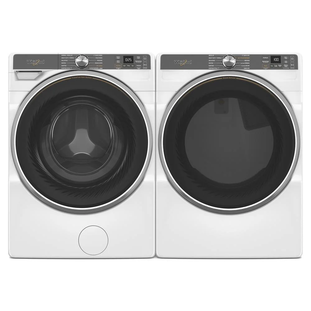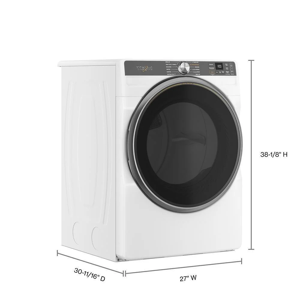 moreRelease wrinkles without rewashing using the Steam Refresh Cycle in this front load electric dryer. It has smart features like AI sensors that automatically adjust dry time, and remote control with the Whirlpool® App. Plus you can finish laundry day in under 1hr by pairing the 25 minute Quick Wash cycle on the matching washer with the 30 minute timed dry.* *Based on a 10-lb load on medium heat.