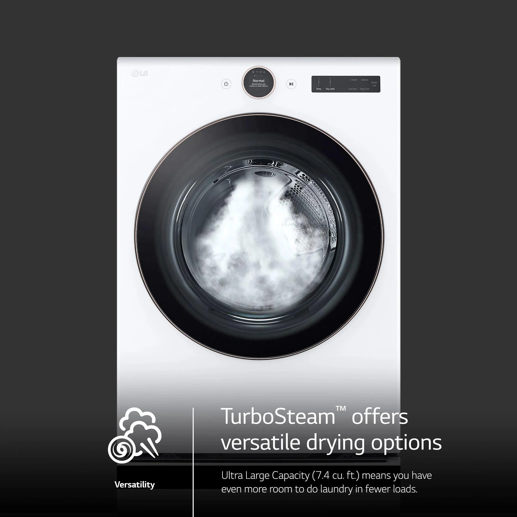 - 7.4 cu.ft. Ultra Large Capacity lets you clean larger loads