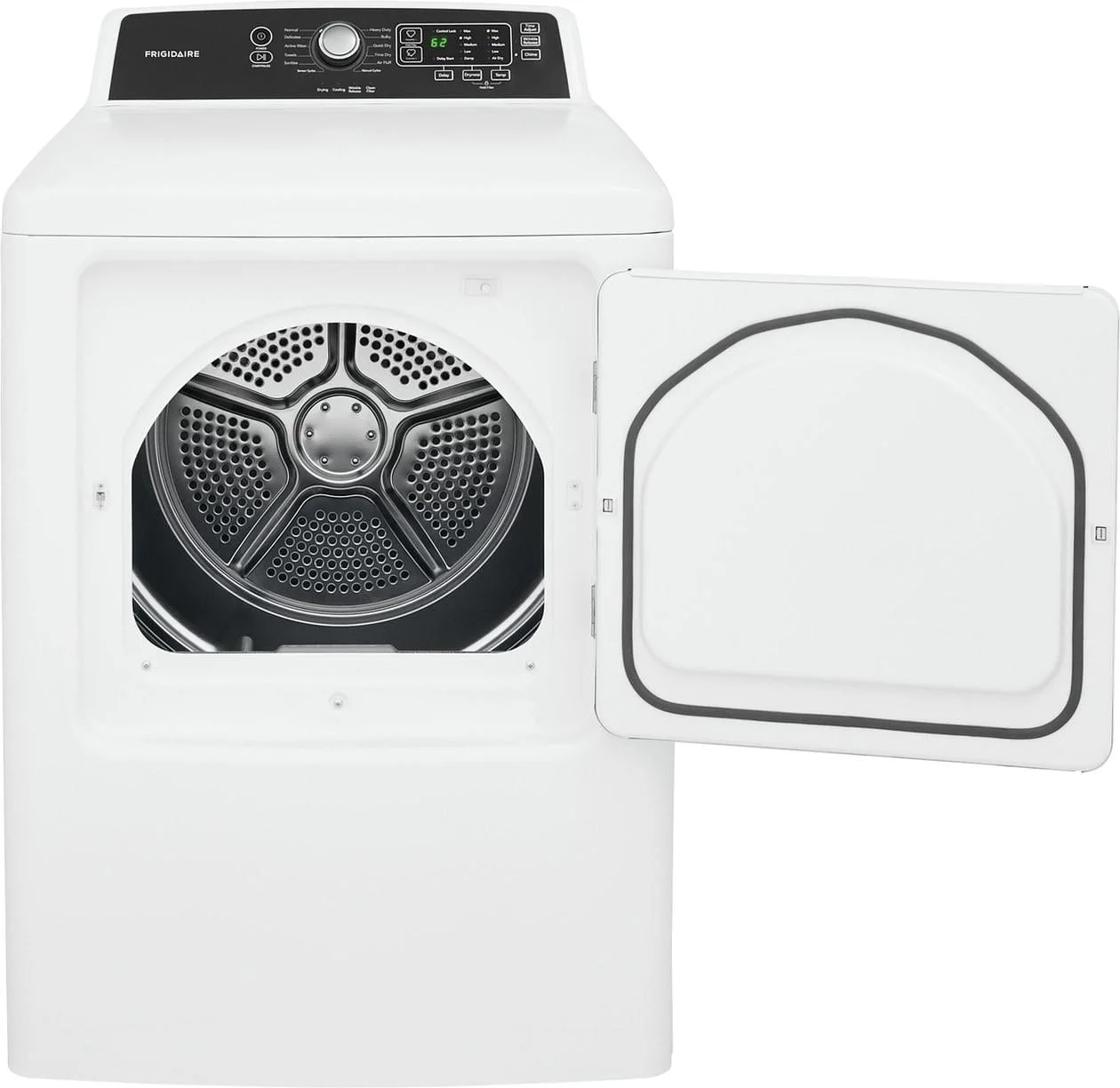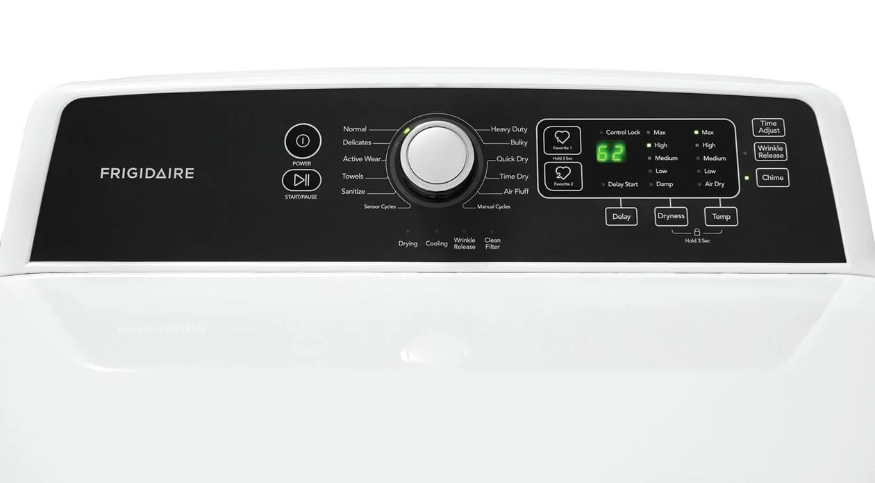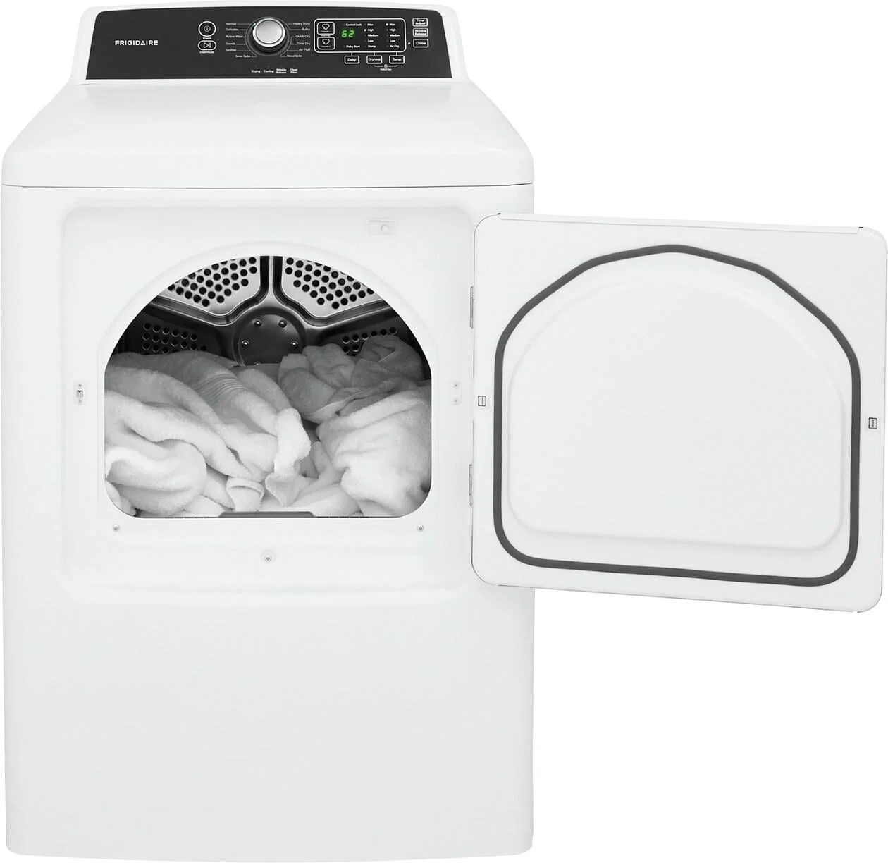 moreThe Frigidaire 6.7 Cu. Ft. Large Capacity Free Standing Gas Dryer allows you to fit more in every load. Dry clothes fast and save time with the Quick Dry Cycle. Meet all of your drying needs with 10 convenient dry cycles such as Bulky, Active Wear and Sanitize. Also enjoy less ironing with the Anti-Wrinkle function that helps reduce wrinkles.