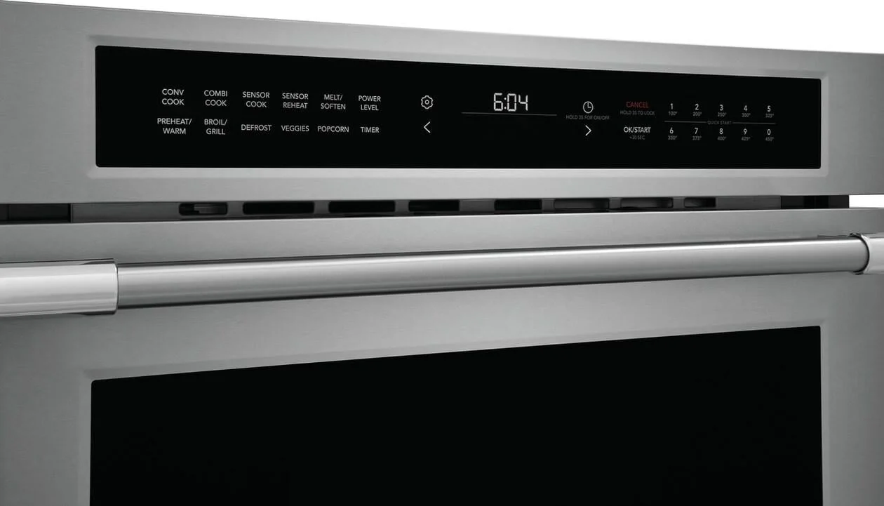 moreThe Frigidaire Professional 30" Drop Down Door Microwave features Convection Bake Technology. Prepare grilled favorites like steaks or sandwiches right inside your microwave with Grill/Broil mode. Plus, enjoy features like Combi Cook, Sensor Cook, Sensor Reheat and Keep Warm offer time savings so that you can put delicious meals on the table without all the extra effort.
