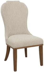 This striking dining chair looks equally at home in traditional or modern settings. A high-contrast brown wood tone finish enhances the wood grain colors for a modern look. Textured beige performance fabric covers the elegantly shaped chair back, merging function and flair.Read More
