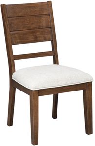 Add exceptional modern farmhouse appeal to your eating and gathering space with this dining side chair. It's sturdy yet charmingly simple, with a nod to mid-century design. A warm wood tone and planking details enhance its rich natural beauty, while the upholstered seat sports an inviting neutral fabric.Read More