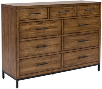 Cool, chic and crafted for the everyday, this dresser is well-suited to your urban contemporary character. It pairs the natural beauty of wood with black metal for a luxe industrial feel. And with nine sturdy drawers, sleek bedroom storage is nearly effortless.Read More