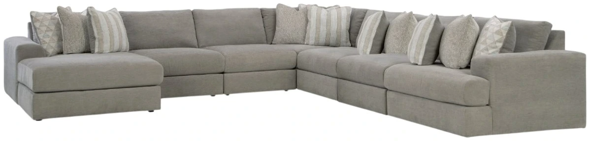 Includes 6 Modular Pieces: Left-arm facing corner chaise, 4 armless chairs, wedge and right-arm facing corner chair