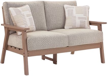 Natural neutrals are all the rage. Embrace the style trend with this outdoor loveseat. Crafted of MEGA-TUFF® HDPE material, this chair combines the exceptional durability and weather resistance you need with the wood look you love. Comfy cushions wrapped in our high-performing, low-maintenance Nuvella® fabric offer stylish and durable appeal.Read More