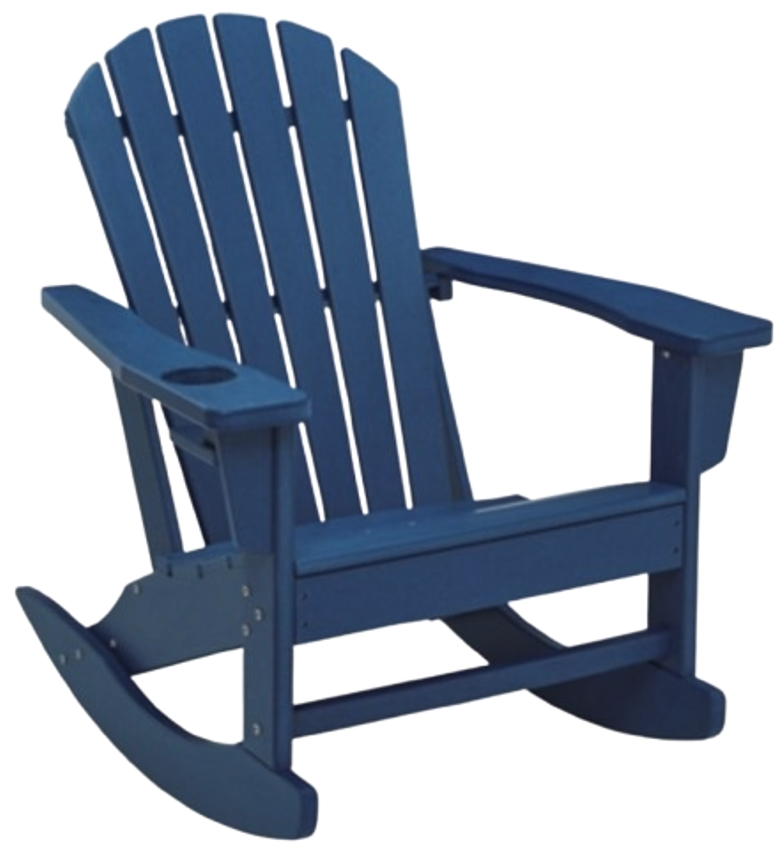 Add cottage-quaint charm to your outdoor oasis with this rocking chair in blue. Made of MEGA-TUFF® high-density polyethylene material, it’s sure to weather the seasons beautifully. Designed to shed rainwater, the chair’s slatted styling and classic Adirondack design provide exceptional form and function.Read More